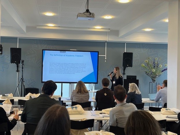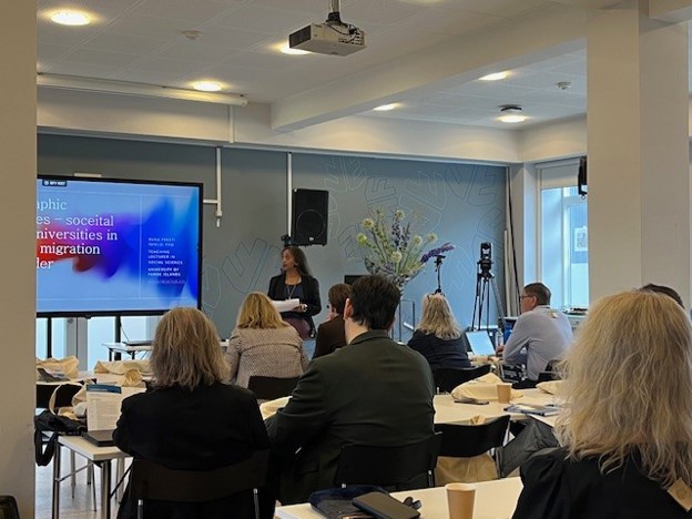 Runa Preeti Ísfeld, lecturer and programme director at the Department of History and Social Sciences, gave a presentation on demographic challenges entitled “Demographic challenges – societal role of universities in terms of migration and gender.”