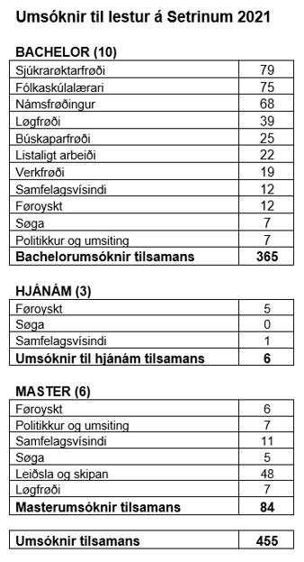 455 fólk hava søkt um lestrarpláss á Fróðskaparsetrinum higartil í ár
