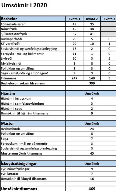 Niðanfyri eru umsóknartølini fyri 2020 og 2019.
