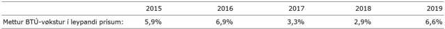 Fyri 2019 metir Búskaparráðið saman við Hagstovuni vøksturin í BTÚ í leypandi prísum at verða 6,6%