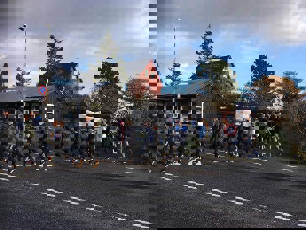 Næmingar og lærarar møttu klokkan 10 á Frælsinum at rigga til skrúðgongu, og 20 minuttir seinni var skilnaðarstundin komin.