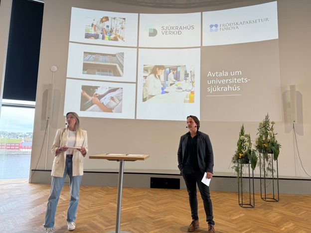 Maria Skaalum Petersen, leiðari á Heilsugranskingareindini í Sjúkrahúsverrkinum, og Magni Mohr, prorektari fyri gransking á Setrinum, høvdu síðani framløgu, áðrenn avtalan um universitetssjúkrahús bleiv undirskrivað
