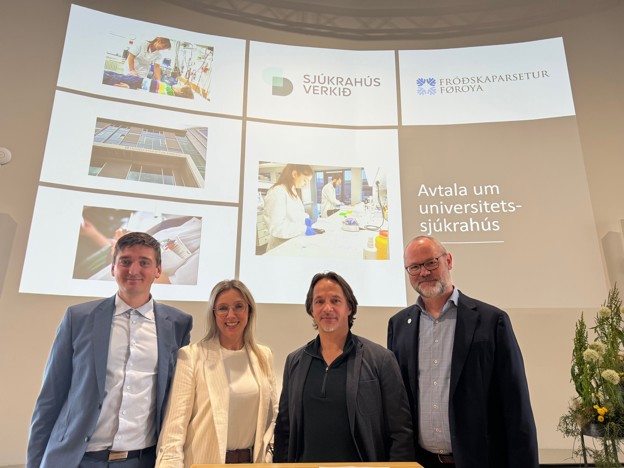 Og so skrivaðu Steinar Eirikstoft, stjóri í Sjúkrahúsverkinum, Martin Tvede Zachariasen, rektari á Fróðskaparsetri Føroya, Maria Skaalum Petersen, leiðari í Heilsugranskingareindini í Sjúkrahúsverkinum, og Magni Mohr, prorektari fyri gransking á Setrinum, undir avtaluna um universitetssjúkrahús