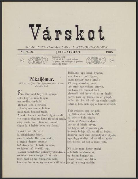 Yrkingin Púkaljómur eftir Sjóvarbóndan, sum Jens Christian Djurhuus (1773-1853) varð róptur, er enduryrking av ensku yrkingini Paradise Lost hjá John Milton, og hon er eindømi í føroyskum skaldskapi.