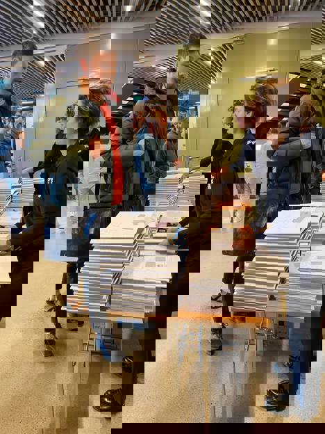Í gongini uttan fyri Kongshøll tóku lestrarvegleiðarar og starvsfólk á Lestrarskrivstovuni ímóti teimum nýggju lesandi, sum fingu lestrarkort og byrjanarpakka við viðkomandi tilfari