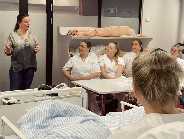 Útbúgvingin sum sjúkrarøktarfrøðingur tekur fýra ár, har ein partur er akademiskur (150 ECTS-stig), og annar er verkligur á klinikk (90 ECTS-stig). Her er Óluva í Gong í einum av undirvísingarhølunum á Deildini fyri heilsu- og sjúkrarøktarvísindi á Vestaru Bryggju í Havn