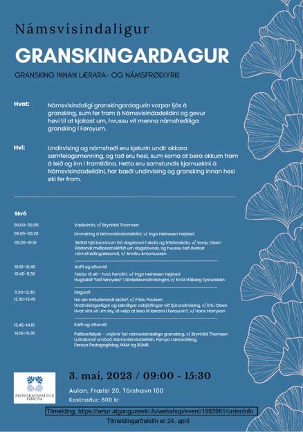 3. mai verður spennandi granskingardagur á Námsvísindadeildini á Fróðskaparsetrinum, har gransking á lærara- og námsfrøðiøkinum verður sett á skránna