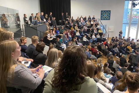Mynd tikin fyrsta lestrardag í fjør, tá innleiðslan byrjaði fyri nýggj lesandi í Kongshøll á Vestaru bryggju í Havn