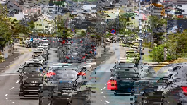 Ólavur Frederiksen tók hesa myndina av ómetaliga langa halanum av bilum við fólki, sum fóru at lata seg kanna fyri koronu