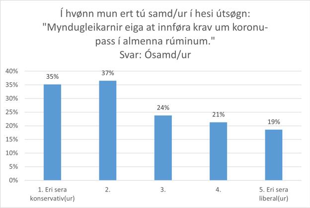 Tá kannað verður, hvørjir veljarar eru ímóti koronupassinum, koma ymiskir samanhangir til sjóndar.