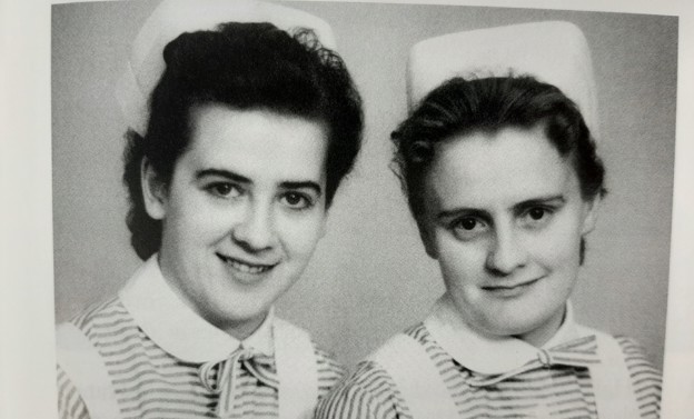 Jóna Frederiksen og Maria Hansen. Útbúnar á Sjúkrasystraskúla Føroya 1960-63