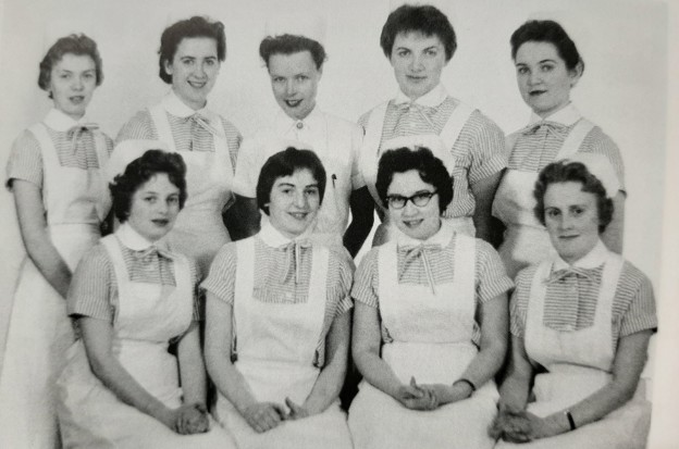 Myndatekstur til ovastu myndina: Átta tær fyrstu á Sjúkrasystraskúla Føroya. Standandi frá vinstru: Jóhanna Eidesgaard, Eiði, Jóna Poulsen, Eiði, Anna Johansson, Havn, Dania Danielsen, Syðradali K., Vónbjørt Hentze, Skúvoy, Anna Johannesen, Skála, Marita Mørkøre, Eiði, Oddvør Djurhuus, Vági og Maria Davidsen, Kvívík