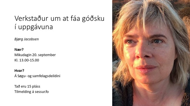 Verkstaðurin verður hildin á Føroyamálsdeildini í V.U. Hammerhaimbs gøtu 22, og pláss er fyri 15 lesandi.