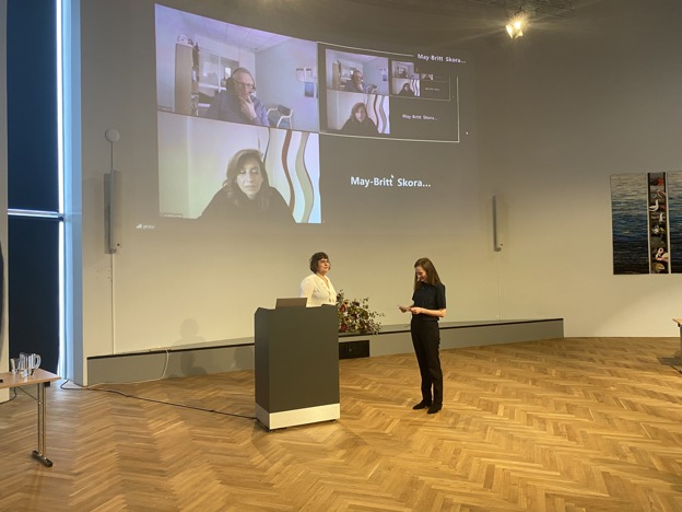 Marin Strøm, lektari, var tann seinasta í metingarnevndini at spyrja og trýstroyna úrslitini hjá May-Britt Skoradal. Hon var eisini tann einasta av andmælingunum, sum var í høllini. Hini bæði, Svein Arne Pettersen, professari, og Susana Cristina de Araújo Póvoas, lektari, vóru við á zoom úr ávikavist Noregi og Portugal