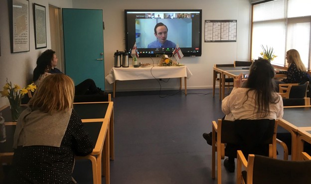 Starvsfelagar á Námsvísindadeildini fylgja við verjuni hjá Inga í gjár. Verjan var talgild og fyriskipað á DPU á universitetinum í Århus
