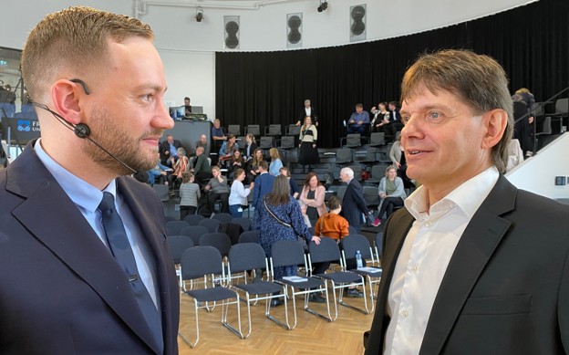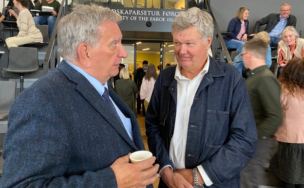 Bjarni á Steig, yvirlækni á Landssjúkrahúsinum, og Gurið Andórsdóttir, leiðari á Ílegusavninum, høvdu eisini okkurt at práta um eftir ph.d.-verjuna hjá Marnari