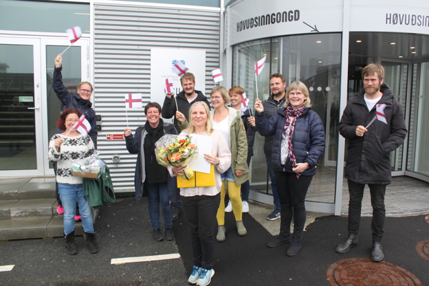 Ása hátíðarhildin uttanfyri Sjóvinnuhúsið fyri sítt avrik.